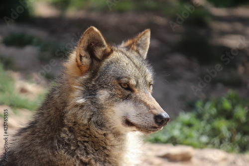 Fototapeta premium Lobo en cautividad en plena naturaleza , lobo iberico , europeo y de la tundra