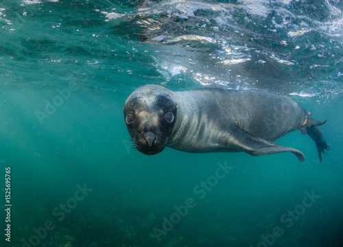 © Sergio, Obraz premium Lobo marino bajo el agua haciendo contacto visual