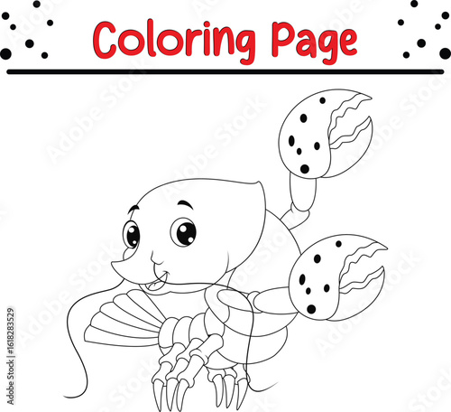 © MAZIDUL, Obraz premium Lobster coloring page. Sea animal black and white for kids.