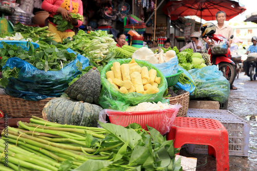 © Tipstour, Fototapeta premium Local Market in Siem Reap, Selling Vegetables and Fruits, and Groceries.