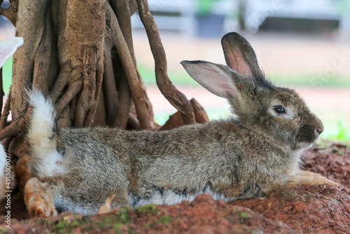 © Radhitya Ardian Arka, Fototapeta premium Local rabbits are sheltering under trees, perfect for Easter and your content.