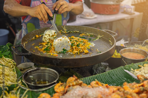 Obraz premium Local street food stalls making Pad Thai in Bangkok Thailand.