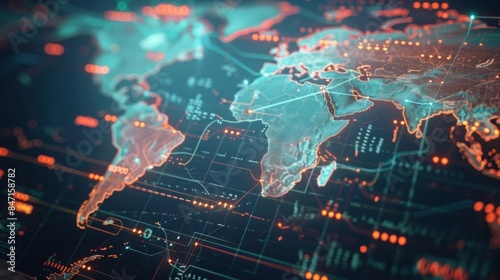 © sara, Obraz premium location. Composition of points and lines on a world map for global business location