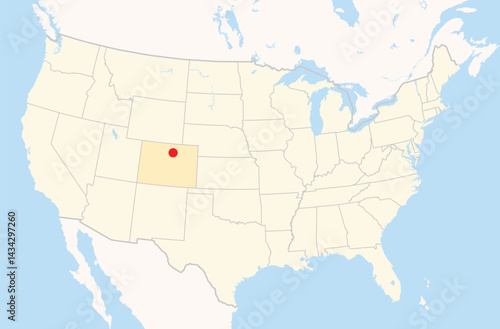 Fototapeta premium Location Map of the city Longmont in Colorado, USA. The state is marked orange and the city is highlighted with a red dot. No labels at all.