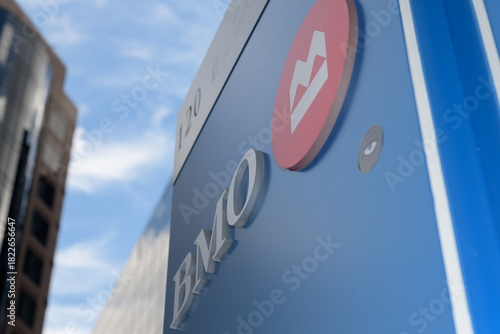 © eugen, Fototapeta premium location marker near BMO Bank of Montreal located at 120 Bloor St E, Toronto