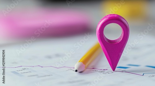 Fototapeta premium Location Marker on Financial Graph Chart with Yellow Pencil for Business Data Analysis Planning