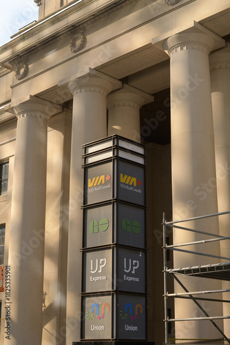 Obraz premium location marker with transit logos outside Union Station, Torotno