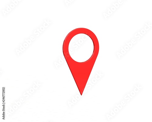 © Nipitpon, Fototapeta premium LOCATION pin glossy red arrow. The concept of tagging a sign landmark needle tip to create a route search. Isolated on white background 3D rendering 3D. – Illustration