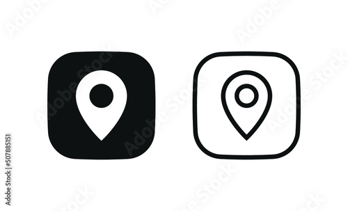 © icons gate, Naklejka premium Location pin icon, map pointer marker symbol, gps map pin icon button in filled, thin line, outline and stroke style for apps and website - square button