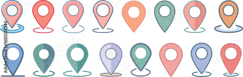 Fototapeta premium Location web icon: Map Pin Icon Set flat vector Design, symbol