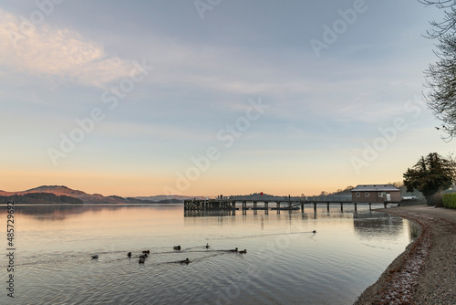 Fototapeta premium Loch Lomond at sunset, seen from Luss, Argyll and Bute, Highlands of...
