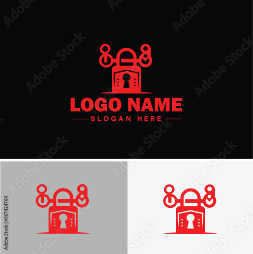Naklejka premium lock and key icon Padlock Bolt Deadbolt flat logo sign symbol editable vector
