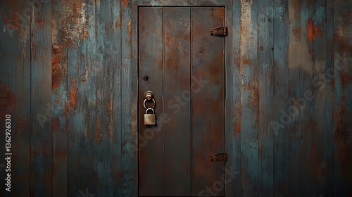 © Yuto, Fototapeta premium Locked Wooden Door in a Rustic Setting: Digital Painting AI Generated