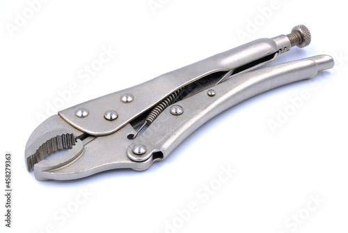 Obraz premium locking pliers isolated on a white background are tools for mechanics, construction work, industrial, and home repair work.
