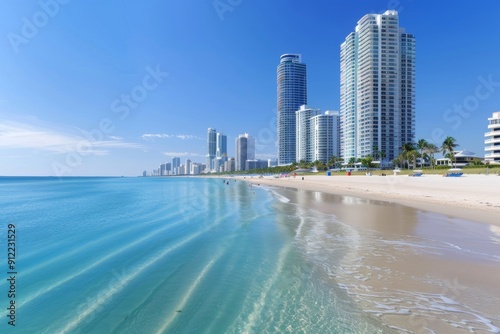 Naklejka premium Lodging in a city near the beach, offering the perfect blend of urban convenience and coastal relaxation with easy access to both city attractions and sandy shores.