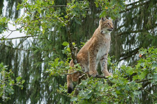 Fototapeta premium Lodjur sittandes uppe i ett träd