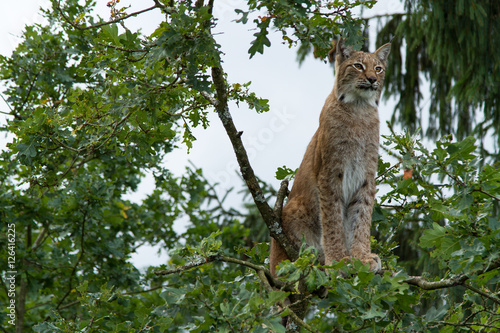 Fototapeta premium Lodjur sittandes uppe i ett träd