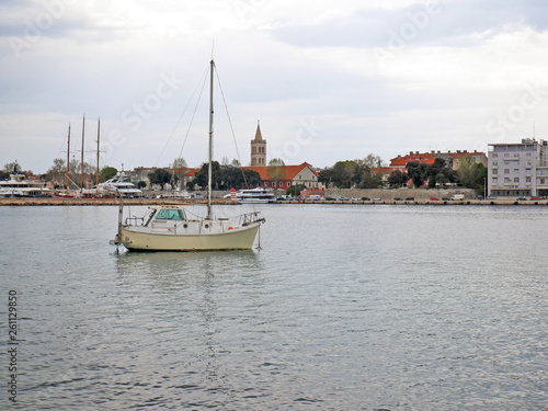 Fototapeta premium Łódka na tle miasta Zadar
