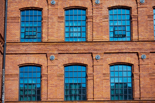Obraz premium Łódź miasto manufaktura okna fasada cegły