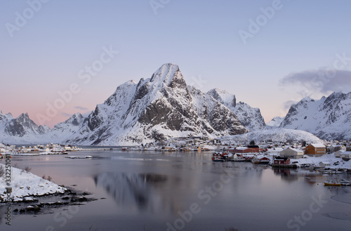 Fototapeta premium Lofoten, Norway landscape, Reine village, Scandinavian nature