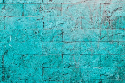 © Григорий Юник, Obraz premium loft style surface. turquoise brickwork. building wall. creative background.