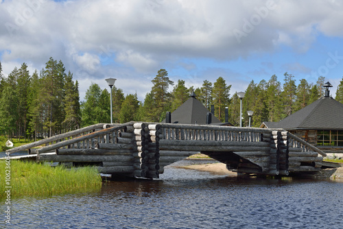 © valeriyap, Fototapeta premium Log bridge over river north. Finland, Lapland