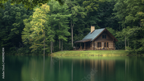 Fototapeta premium Log cabin by secluded lake