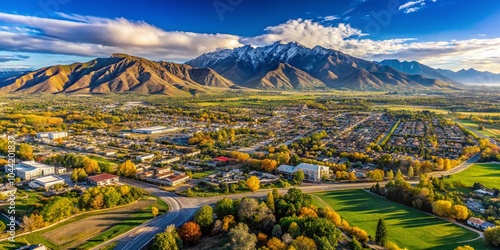 Naklejka premium Logan Valley Landscape Photography with Wellsville Mountains and Cache County Towns