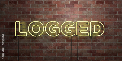 Obraz premium LOGGED - fluorescent Neon tube Sign on brickwork - Front view - 3D rendered royalty free stock picture. Can be used for online banner ads and direct mailers..