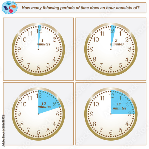 © diamondtetra, Naklejka premium Logical task. How many folowing periods of time does an hour consists of