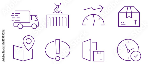 Naklejka premium Logistics and delivery icons representing tracking, speed, and efficiency.