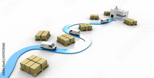 Fototapeta premium Logistics industry conceptual image, original 3d rendering and models