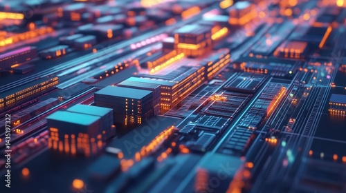 © Chantip, Obraz premium Logistics network flat design side view global supply chain theme 3D render Complementary Color Scheme