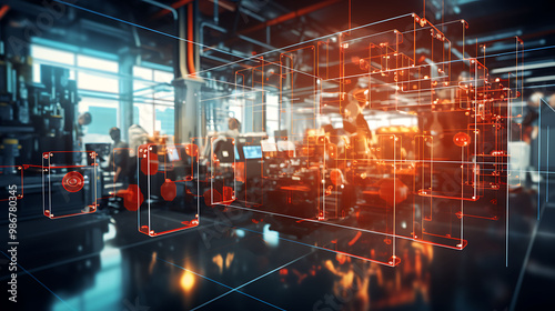 © Premium Graphics, Obraz premium Logistics planning strategy in logistics automation driven by AI visualized in an abstract design where AI forecasts demand and optimizes resource allocation