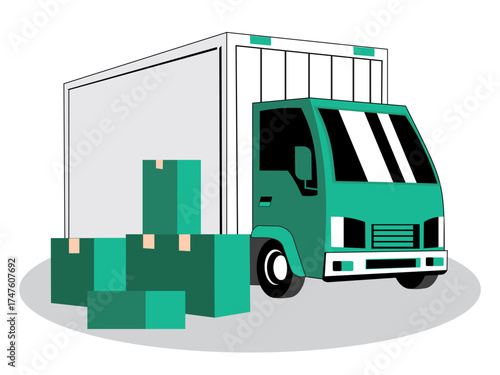 © Arif, Fototapeta premium Logistics Truck Illustration with Cardboard Boxes,Courier Service and Goods Delivery