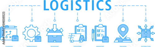 Obraz premium Logistics web icon vector illustration concept with icon of (planning,management,packaging,transport,inventory,tracking,distribution)