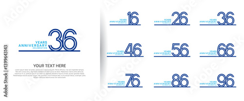 Naklejka premium logo anniversary set. blue color with long line on white background for...