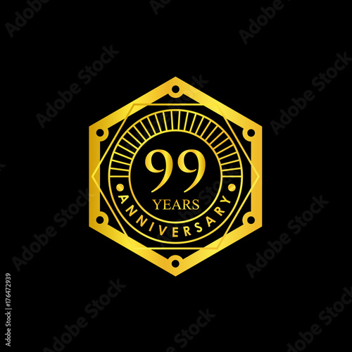 Fototapeta premium Logo badge Anniversary Black and Gold 99 Years. logo Vector illustration