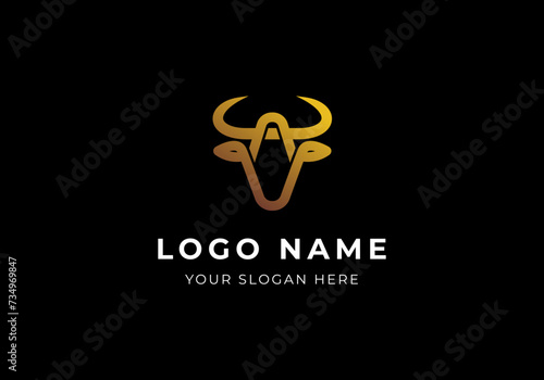 Fototapeta premium logo cow head and horn with initial letter A. minimalist and modern logo...