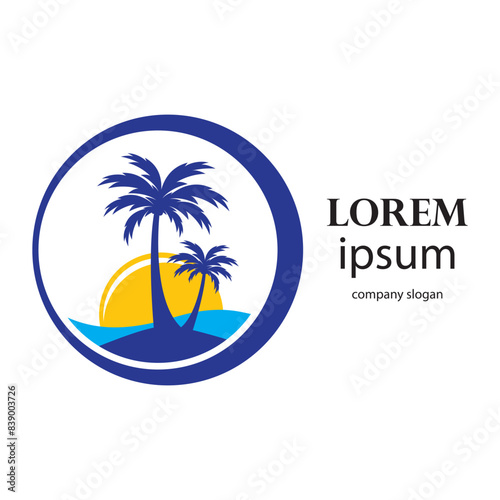 © Ang' it, Naklejka premium logo design of the sun shining in the gap of a palm tree