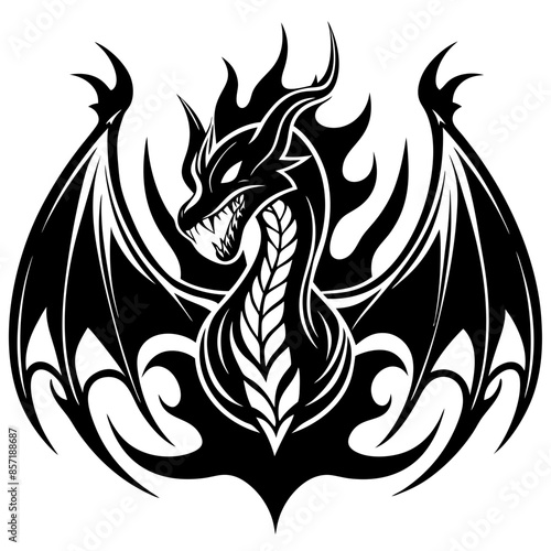 © Vector illustration, Obraz premium logo-dragon-surrounded-by-black-flames