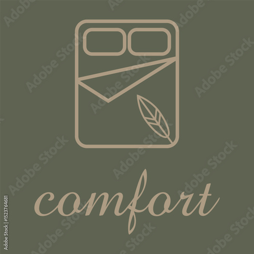 Naklejka premium logo for furniture, bed sheet, bed cover or household appliance brand products. with feather icon represent comfort.