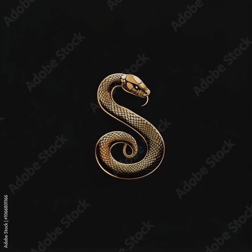 © Elena, Obraz premium Logo, golden snake on a black background.