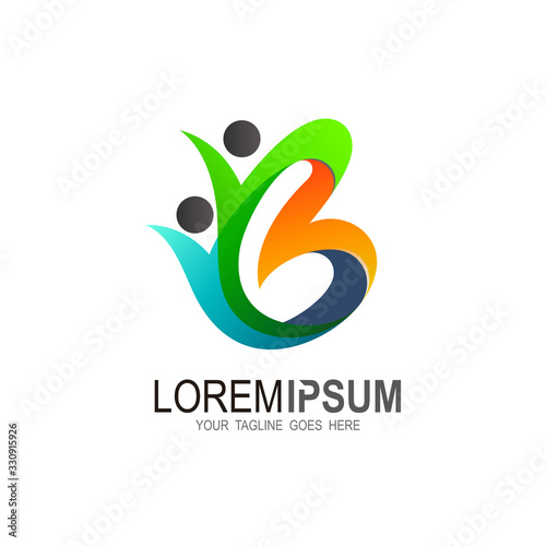 Fototapeta premium logo human and letter b design vector, charity icon , social and community symbol