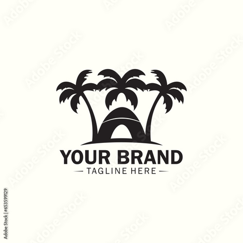 © Arry, Naklejka premium logo illustration of three coconut trees and a tent