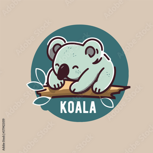 Obraz premium logo koala, vector illustration of a cute koala on a branch