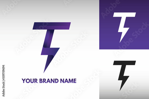 Fototapeta premium Logo Letter T Initial monogram Electric Power thunder Lightning Style Design Vector in Gradient and monochrome color