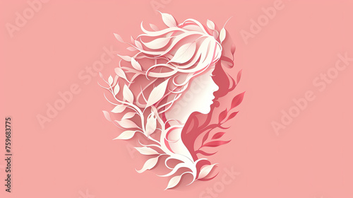 © Mahnoor, Fototapeta premium logo of a woman with leaf hair art on pink background, for hair salons, haircutting, hairstyles