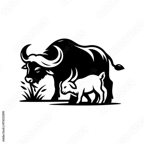© Dhika, Fototapeta premium logo of cow and goat eating grass