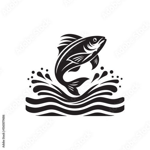© i'uLpotra, Naklejka premium logo of fish jumping on water